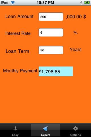 In the Expert mode, user can type in any number as the input for loan amount, interest rate and loan term. The App would calculate the monthly payment based on the inputs.