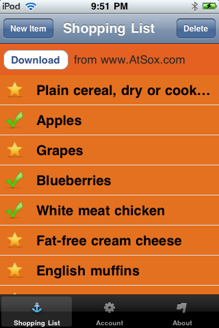 You can use the App to download shopping list from its free online version at www.AtSox.com. You need to sign up at the website (it is free) and tell the App your account information at www.AtSox.com. After that, it would be very convenient for you to manage your list online with your desktop (so you can copy/paste or print), and download it to your IPhone through the App by one single click.